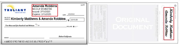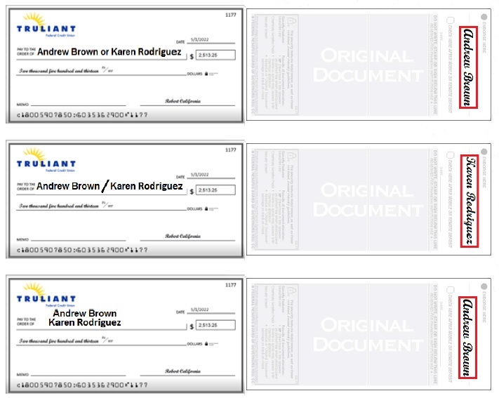 If a check is made payable to a member and a non-member, the non-member MUST be present and provide ID that is required to be documented on the front of the check in order for the check to be negotiated.